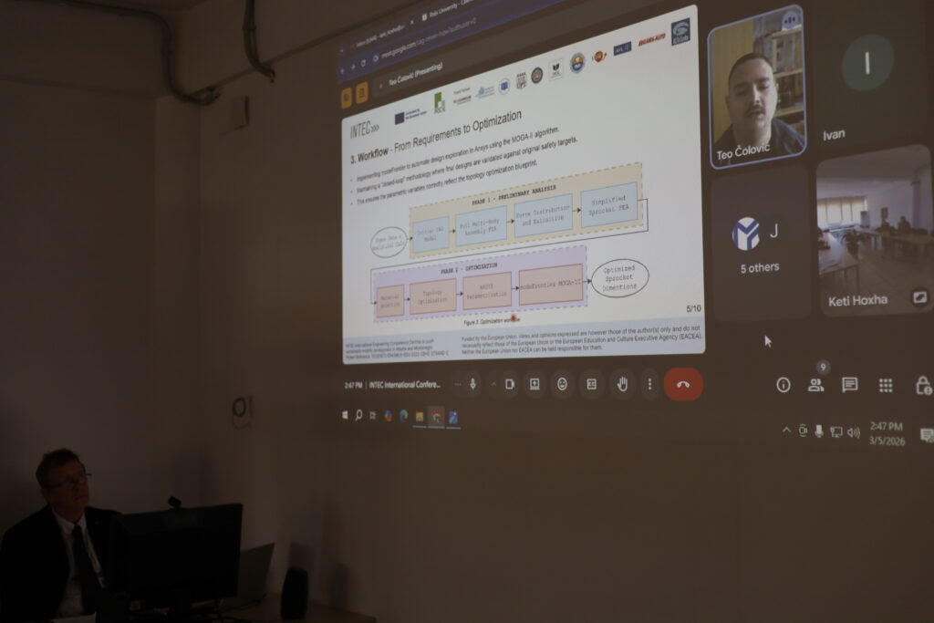 The INTEC international conference on sustainability was held on March 5 and 6, 2026, at POLIS university in Tirana, Albania, and gathered approximately 200 participants (on-line and on-site) representing academia, research institutions, public authorities, industry stakeholders, and students from Albania, Montenegro, and other European countries. The conference commenced on 5 March 2026 with registration and an opening performance, followed by the official welcome session.