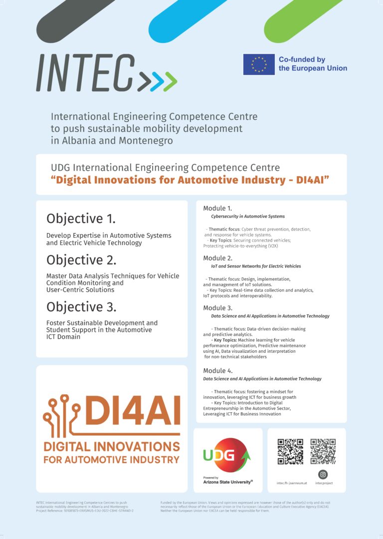 International Engineering Competence Centre “Digital Innovations for Automotive Industry – DI4AI” is established at University of Donja Gorica, with main goal to foster research and development of innovative ICT systems that can be applied in two key areas: